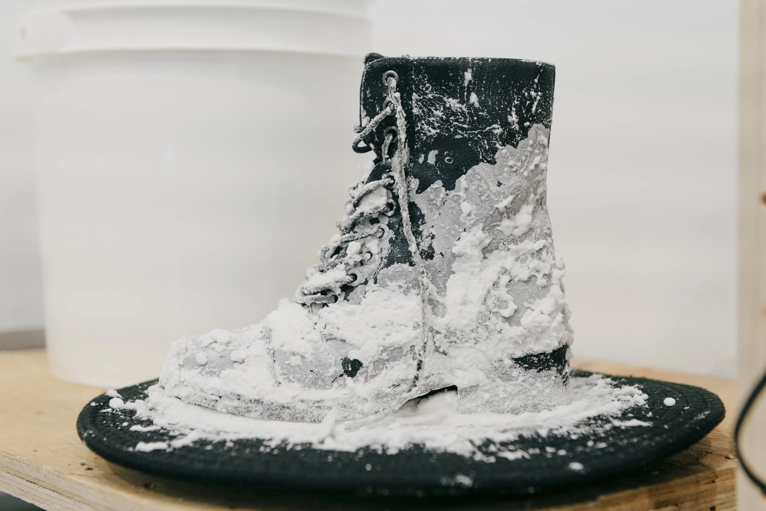 Puisque Maxime faisait l’aller-retour Québec–Lévis en traversier quotidiennement, le projet a été rythmé par ce trajet sur le fleuve. Le matin, Maxime performait des actions furtives sur le pont du navire, tandis qu’avant de reprendre le bateau en soirée, il déposait dans la vitrine de Regart, située dans la gare fluviale de Lévis, le sel trié, sa veste et ses gants de travail.
